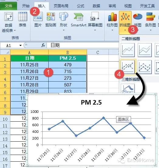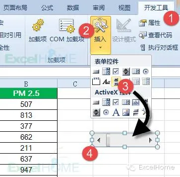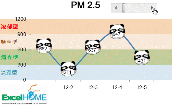图表中始终显示5天的PM2.5数据,当调整滚动条时,图表会自动更新结果。接下来咱们以Excel2010为例,来说说具体的操作步骤。