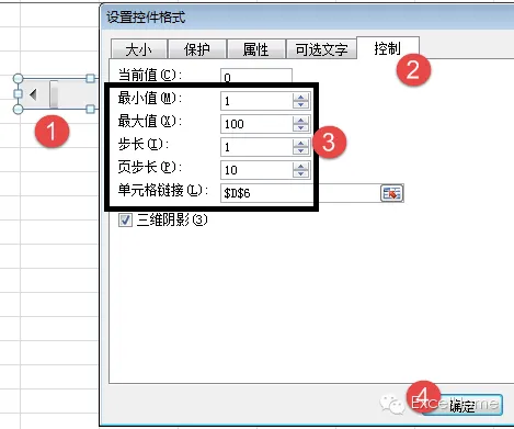 OFFSET函数的行偏移量由D6单元格指定,而D6单元格则由滚动条控件来控制。