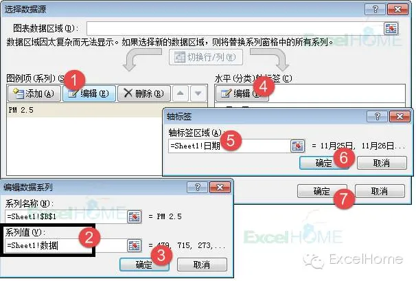将轴标签和数据系列修改为刚刚自定义的名称。