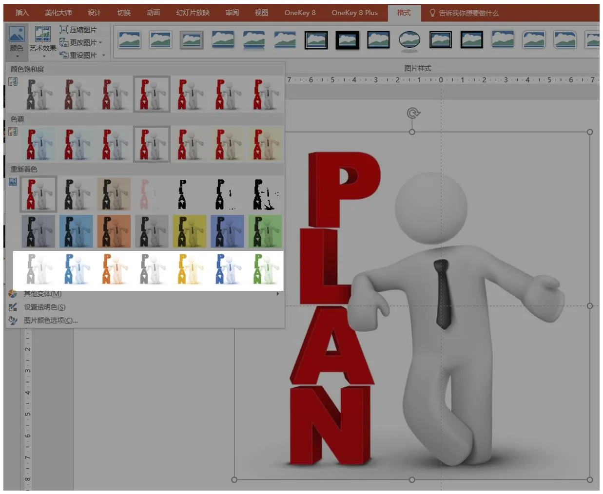 除了我们之前讲过的插入形状、调节大小、填充颜色、改透明度……还有一个更快的方法,那就是直接将图片的亮度调低。
