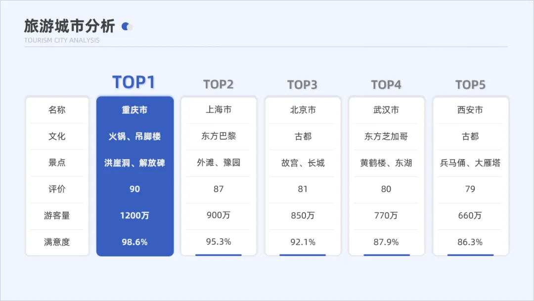 继续看第二个案例,这个案例是一个多城市对比表格,主要强调排在第一位的重庆市。