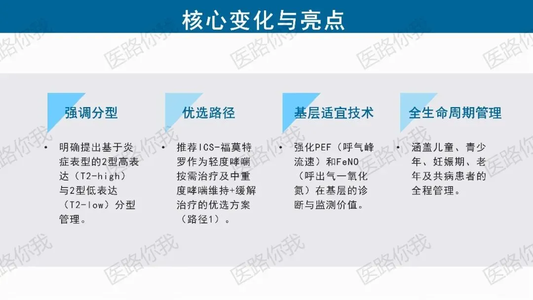 《指南》强烈推荐低剂量ICS-福莫特罗作为全阶梯管理的优选药物:优势:这种方案简化了用药流程,提高了依从性,更能显著降低急性发作风险。3. 精准分型:T2-high vs T2-low