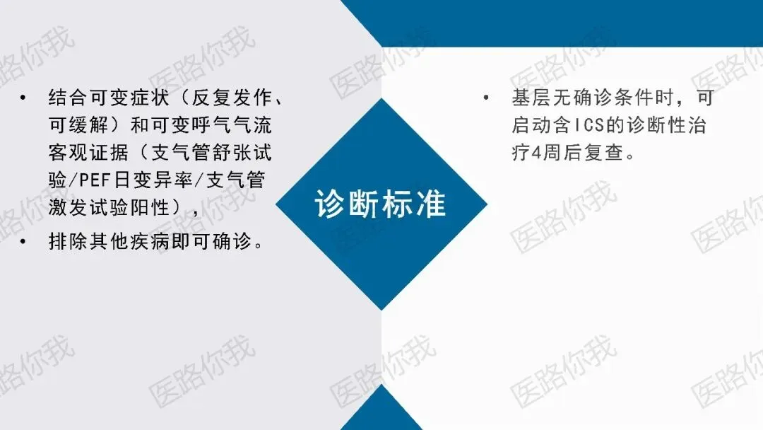 针对不具备肺功能检查条件的基层机构,《指南》提出了极具操作性的拟诊路径:- 对于疑似哮喘患者,若无法进行激发或舒张试验,可给予含吸入性糖皮质激素(ICS)的诊断性治疗≥4周。