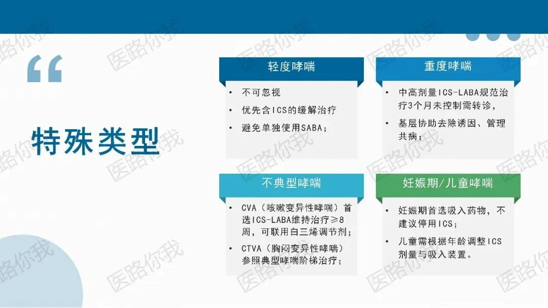 哮喘-慢阻肺重叠(ACO):起始即推荐三联治疗(ICS-LABA-LAMA),禁用单独LABA或LAMA。