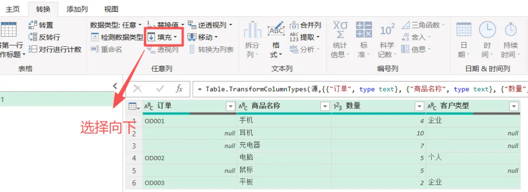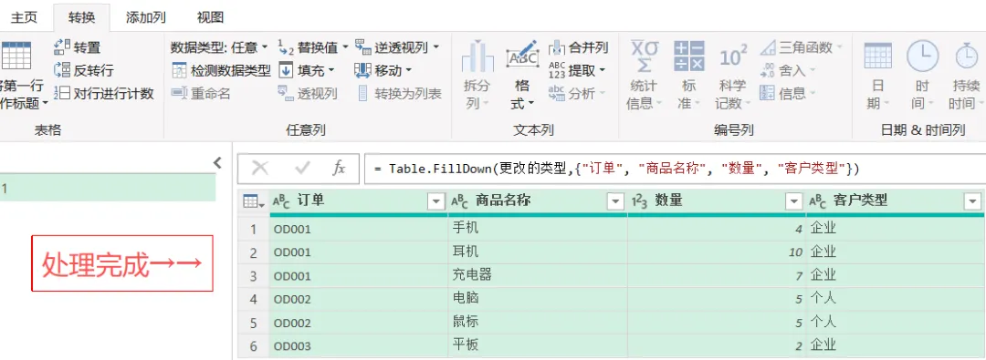3.直接启动PQ,会自动把表格区域生成”表“,在PQ里直接开始操作填充,不像手动操作繁琐。