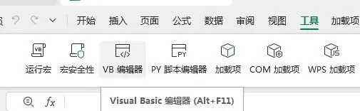 二、打开EXCEL(示例为wps软件下的),点击"工具"->VB编辑器,图示如下: