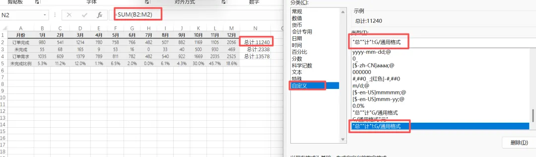 在“类型”框中输入:总计:G/通用格式