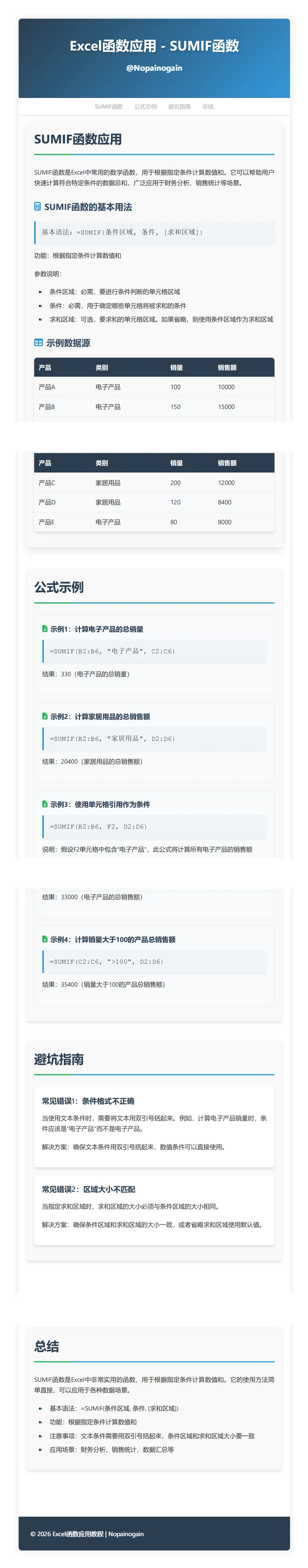 >Excel函数应用 - SUMIF函数
