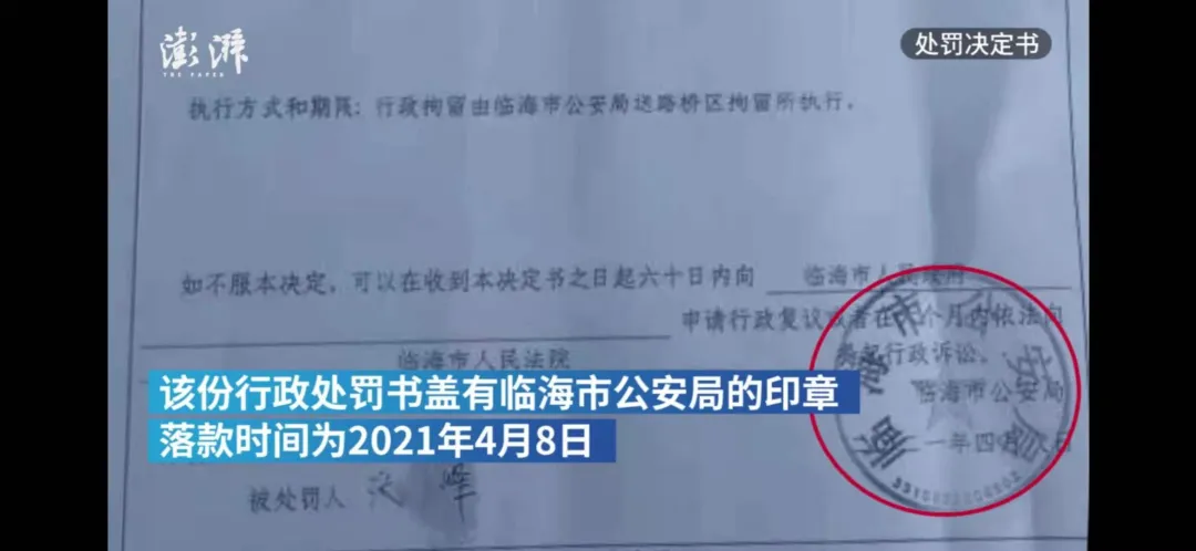 4月16日,前述台州警方人士证实,该行政处罚书属实。