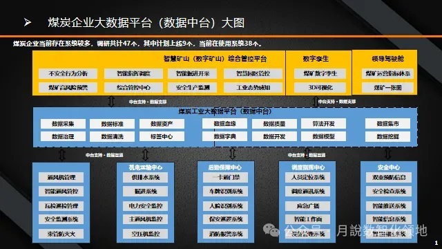 再分享一份 智慧矿山数字化工业大数据平台建设方案(53页 PPT),仅供参考~【月説·数智行业·领地】还汇总了智慧矿山数字化建设指南,包括工业大数据解决方案、矿山产业集群大模型运营最佳实践、技术方案、矿山智能化标准体系框架、相关报告、白皮书····等相关内容,仅供参考,一起学习~