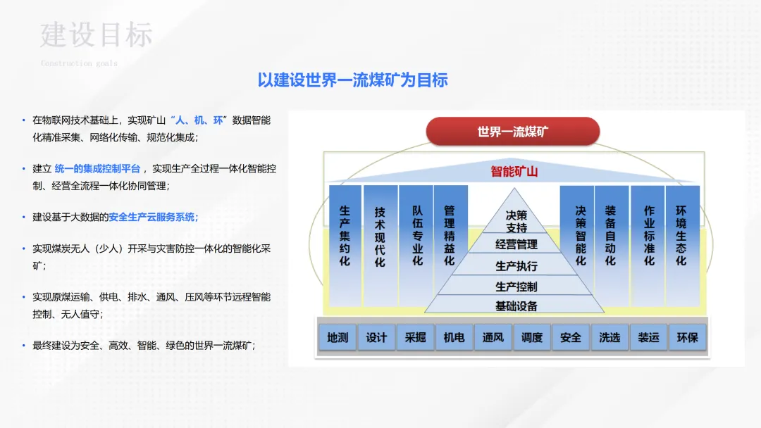 将智慧矿山列为 “能源资源安全保障工程” 与 “传统产业数字化转型工程” 的重点内容,定位为现代矿业体系的核心形态;