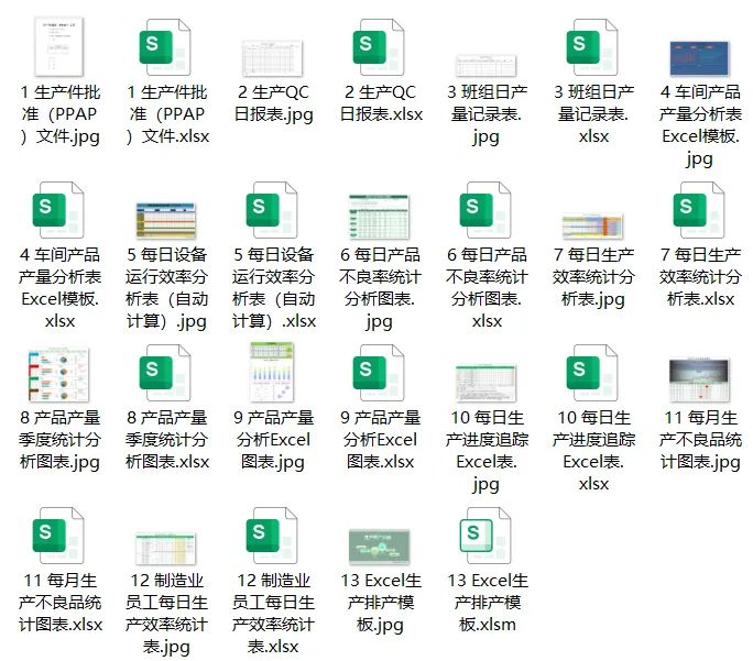 如何获取下载13套Excel生产表格模板:
