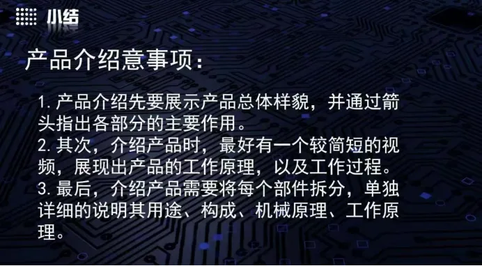 产品是项目的核心,需通过 “全貌 - 细节 - 优势” 三层逻辑展现: