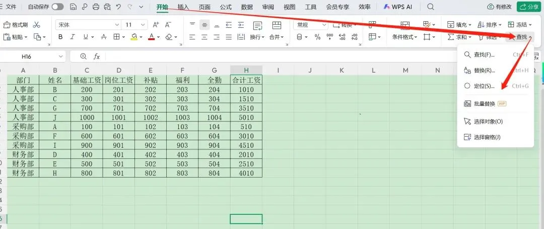 比普通查找更方便批量处理的,是定位功能。可以按快捷键Ctrl+G或者直接按F5,也可以点击“开始”,在“查找”按钮的下方,选择“定位”。