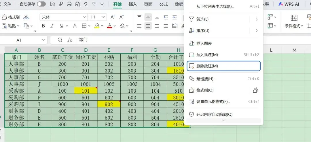 如果需要删除所有的批注,那么就选中需要处理的区域,再单击右键,选择“删除批注”,就可以了。