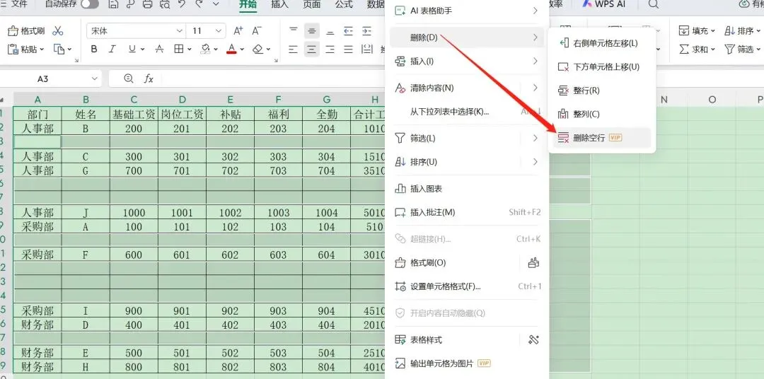 然后再单击右键,选择“删除”,再选择“删除空行”即可。
