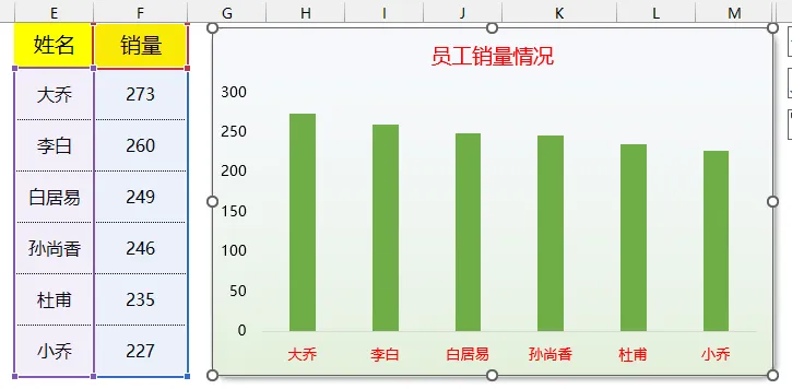 在空白单元格(比如 E2)输入公式:=SORT(B2:C7,2,-1)三、插入柱状图,图表自动跟着变