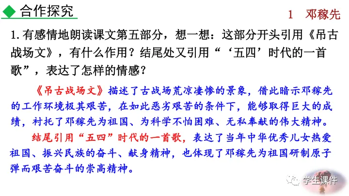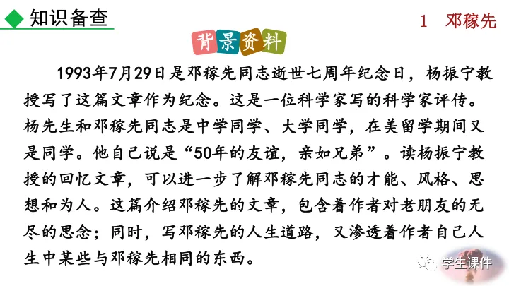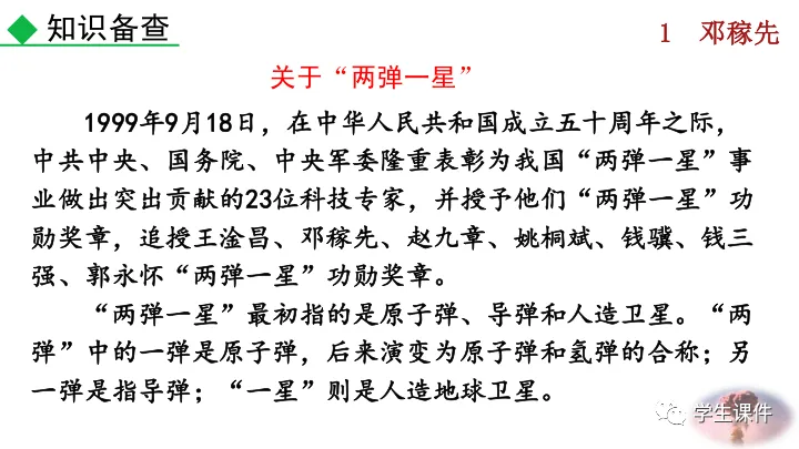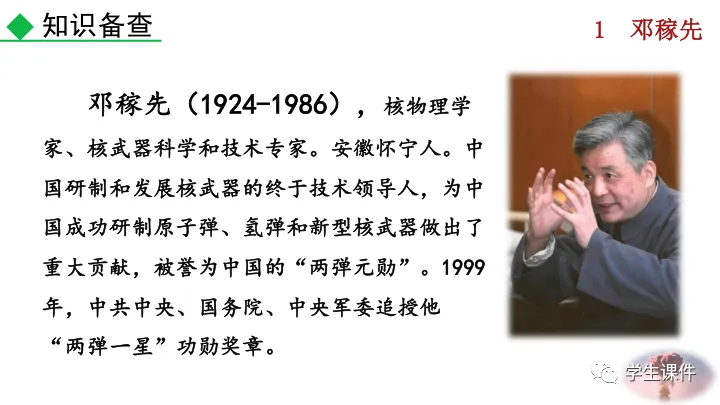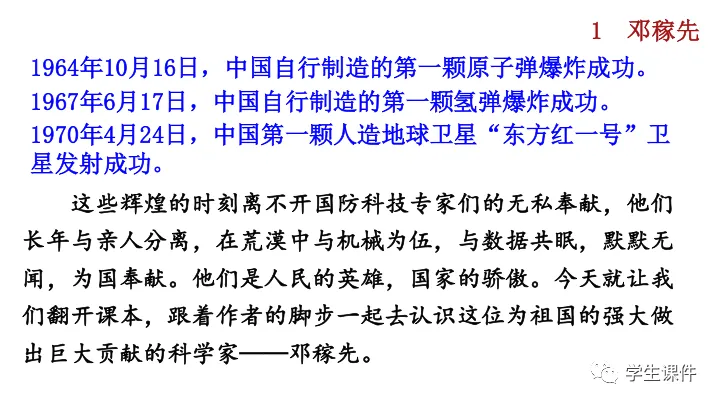 当前位置:首页>PPT>PPT课件 课文1.邓稼先 (七年级语文下册)