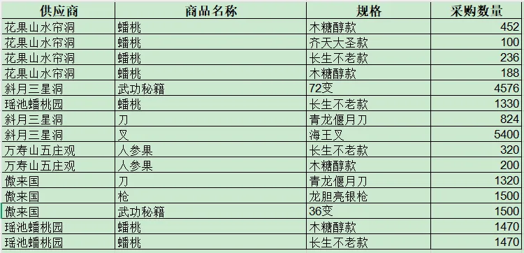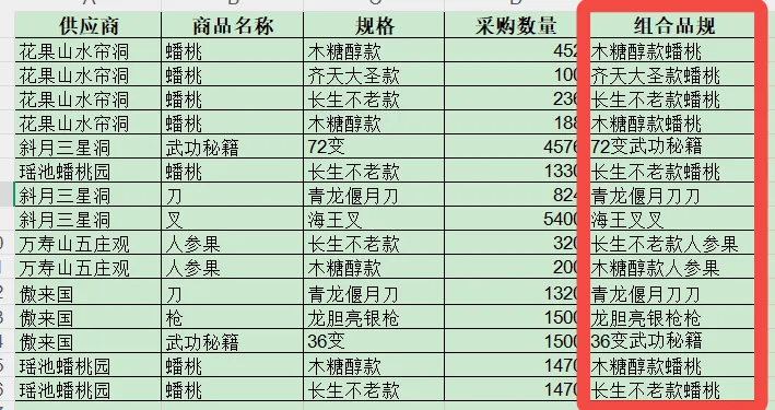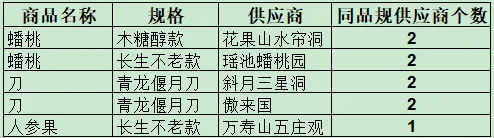 需求:根据一个月的采购记录,提取出多个供应商供应同品规货物的清单