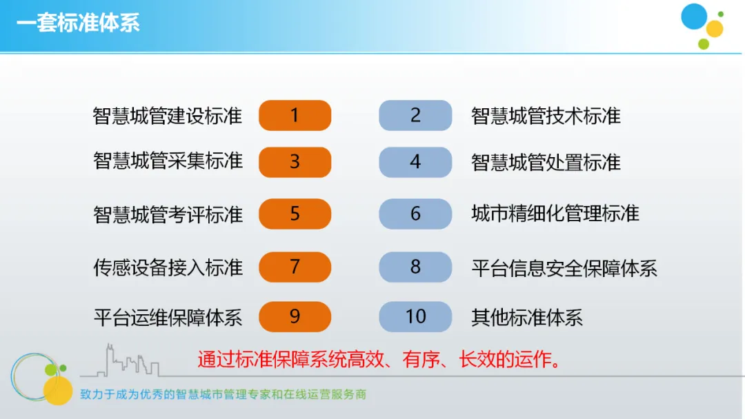 - 一套标准体系:涵盖建设、采集、处置、考评等 10 大标准,保障系统有序运行;