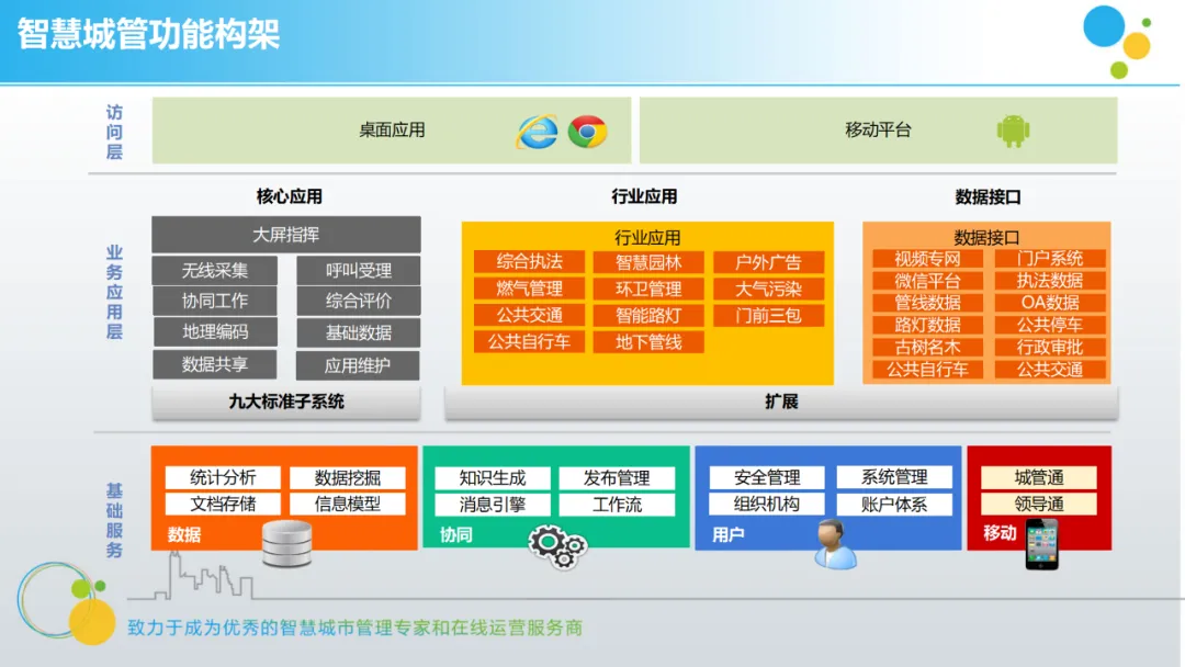 它融合了物联网、云计算、数据挖掘等新技术,实现监管精细化、职能协同化、服务多样化、决策智能化、执法人性化,让城市管理更全面、更高效、更贴心。