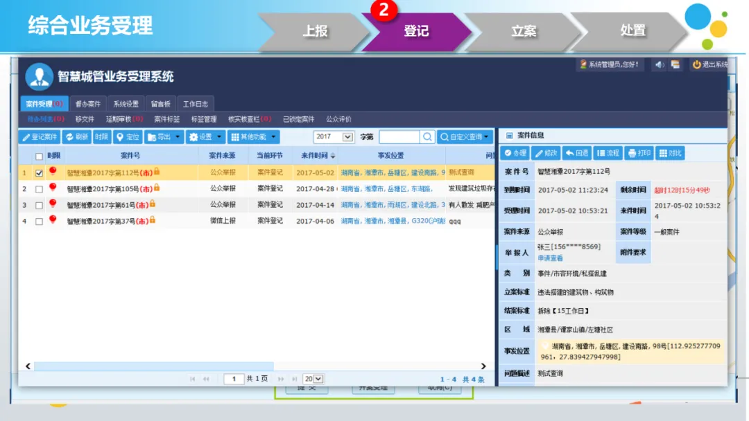 - 登记立案:受理员对问题进行分类、定位,符合标准则立案;
