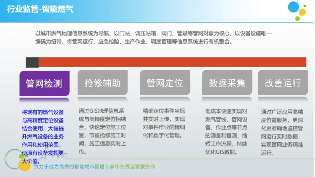- 智能燃气监管:整合燃气管网地理信息,通过高精度定位快速定位施工位置,实时监控管网运行数据,提升抢修效率;