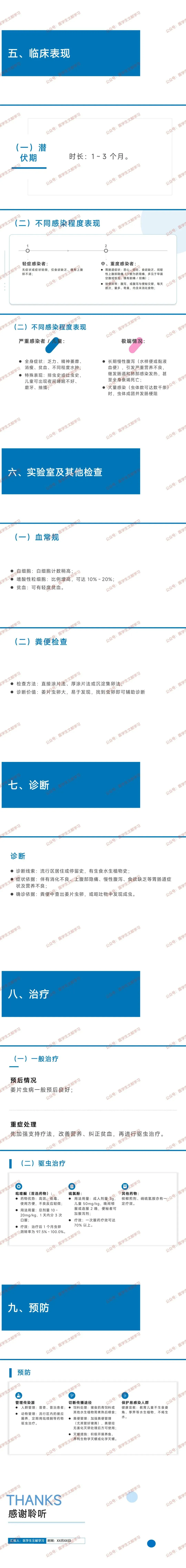 流行特征:地方性传染病,流行于亚洲温带与热带地区,我国南部及中部水乡为主要流行区;感染多发生在 9~11 月份,与生食水生植物习惯密切相关。
