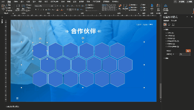 ▲ 选中一个六边形设置形状格式