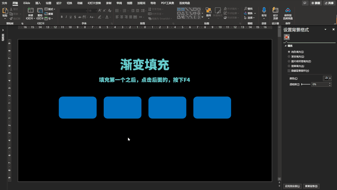 灵活一点,用渐变填充的话,后面点选形状再按下 F4 键会发现这个功能依然有效。