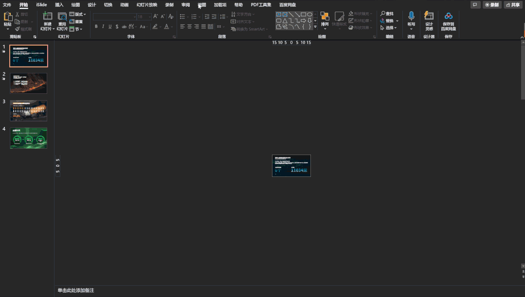 那么需要在每一页都添加吗?这也太麻烦了吧。不妨点开【视图】-幻灯片母版,然后点击插入形状,缩小页面后在母版页里添加,关闭母版页后,每一页就都有啦。(这又是一个小知识点)