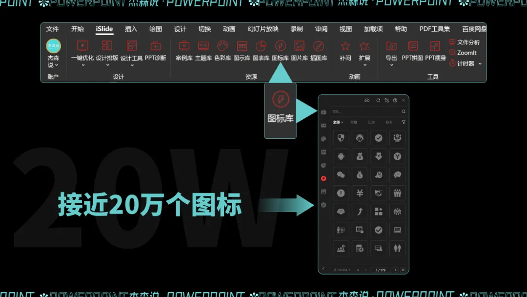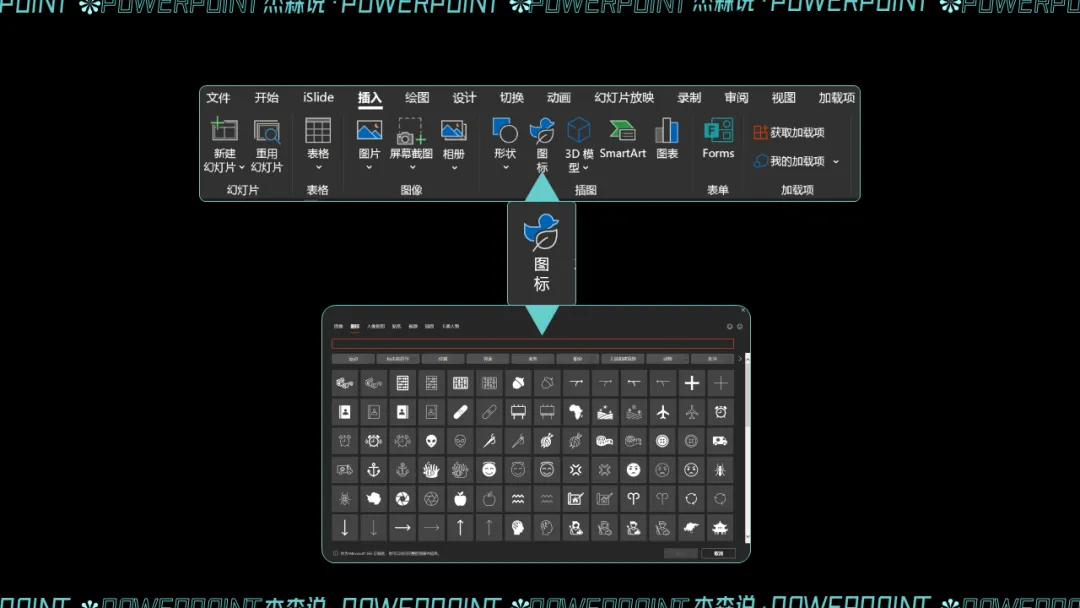 早在 Office 2016 版本的时候,PPT 里就更新内置了图标库这个功能,这也意味着不需要额外去网站搜索图标,也能满足日常需求。