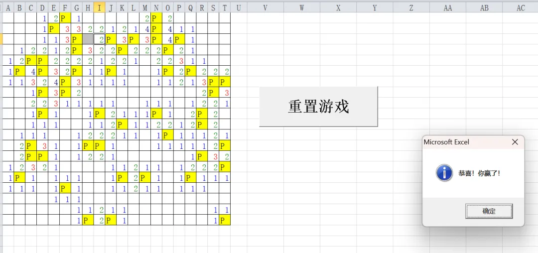 先展示一下扫雷在Excel中的样子。玩之前记得调成正方形比较好…