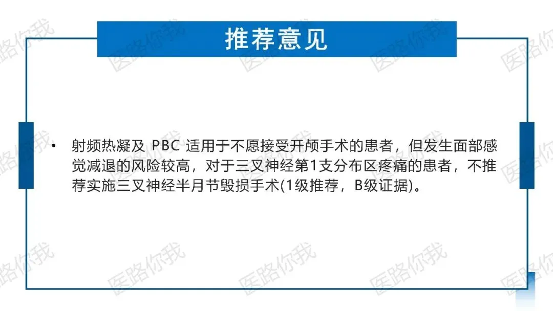 适用人群:身体条件允许、诊断明确的原发性三叉神经痛患者。