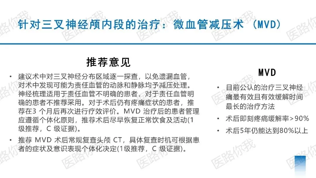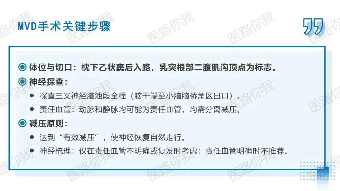 指南对外科手术进行了细致的分层推荐,明确了微血管减压术 (MVD) 的核心地位。