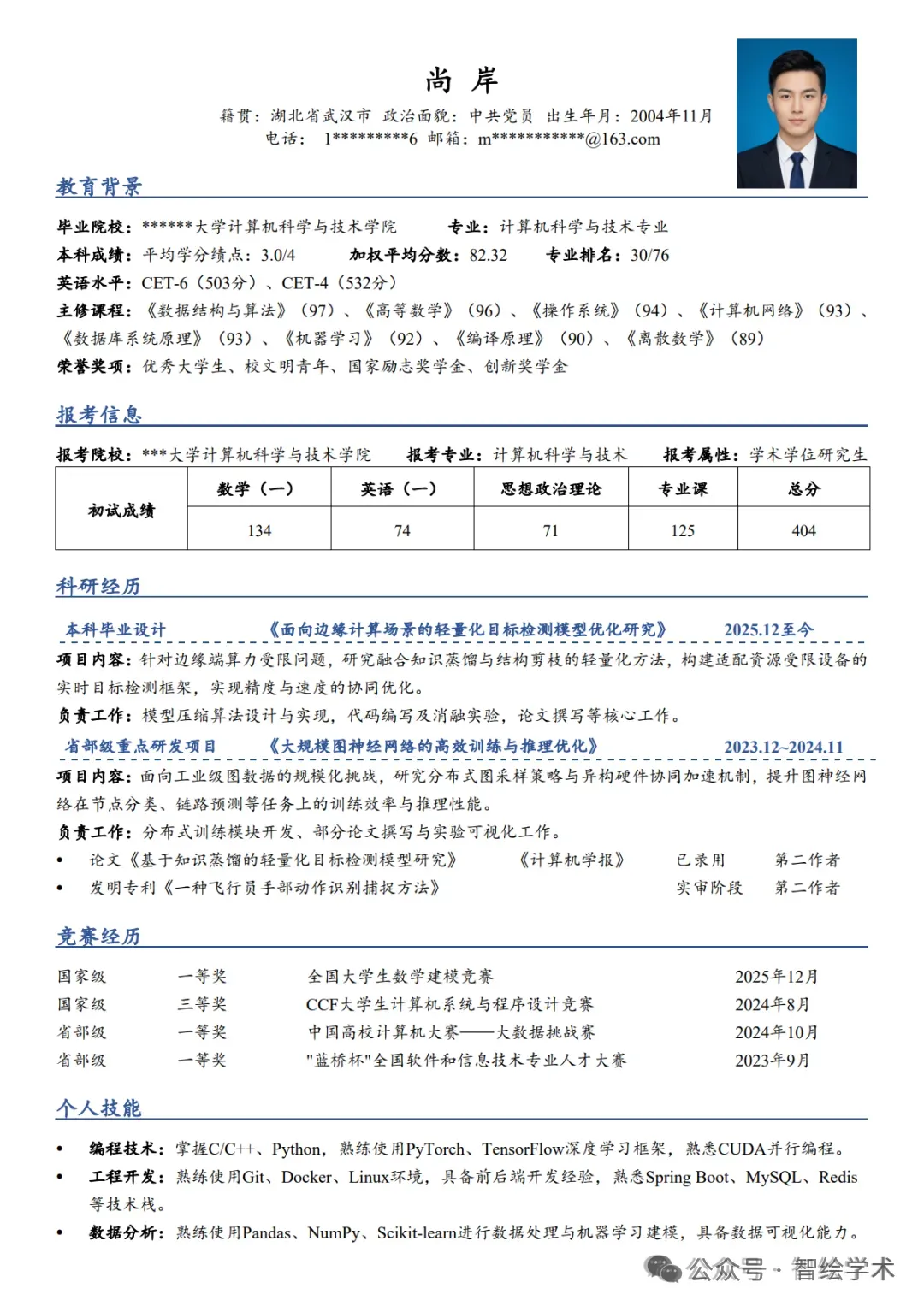 学术风简历word模板