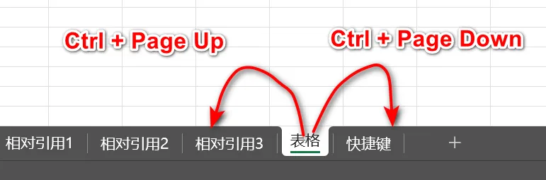 Ctrl + Page Up(切换到上一个工作表)、Ctrl + Page Down(切换到下一个工作表)
