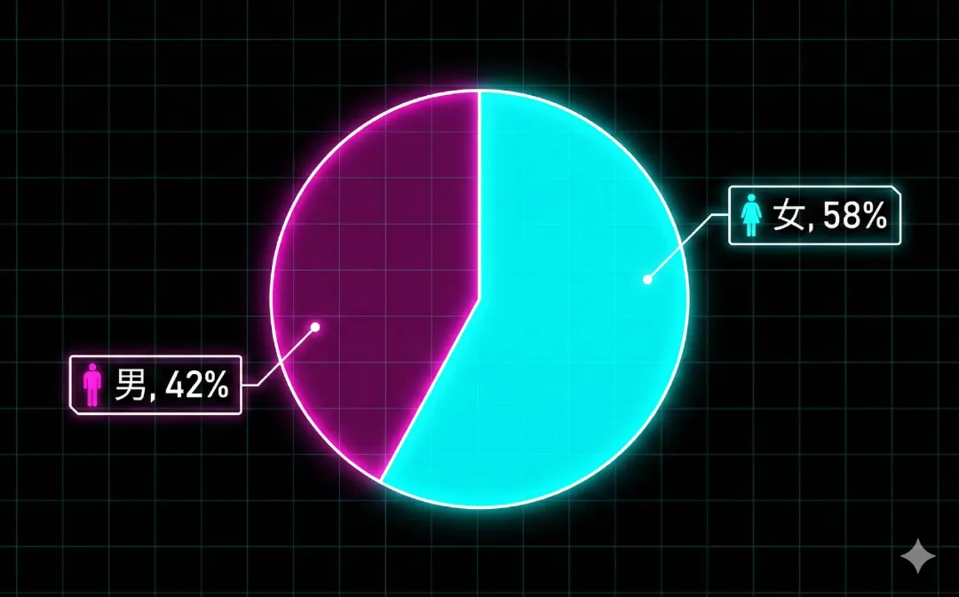比如我随手在纸上画了一个饼图,展示公司某款产品的用户性别占比。