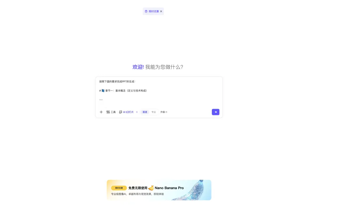 ⚠️注:这里其实不仅仅是GLM可以这样先生成PPT的提示词再去完成PPT的制作,而是针对所有的AI工具都可以这样,这样可以大幅度保证生成内容的高质量。