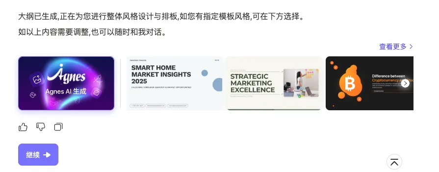 可以选择风格,这样一来就省去了PPT风格描述的工作了:
