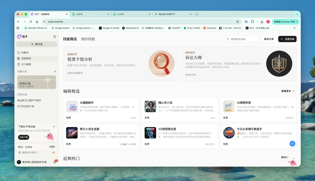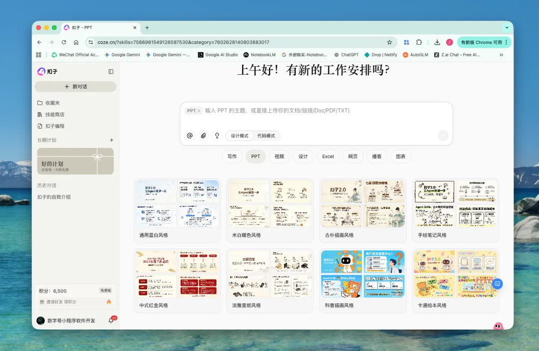 最后,请允许我再介绍下那个曾经让我抓狂的Coze,抛开Coze的工作流确实刚开始有点缺陷,但Coze空间里面的PPT生成,有一说一它还是有点东西的: