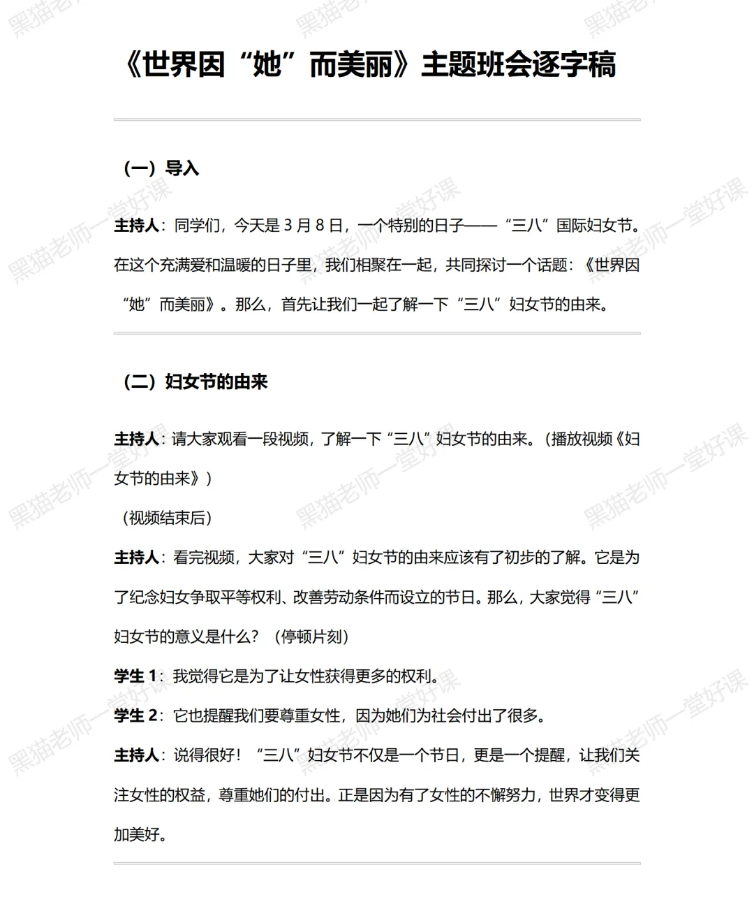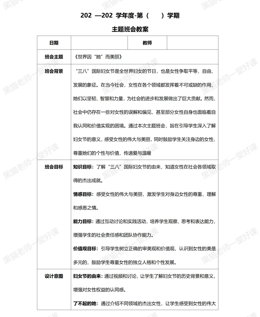 课件类型 | 妇女节主题班会课