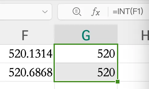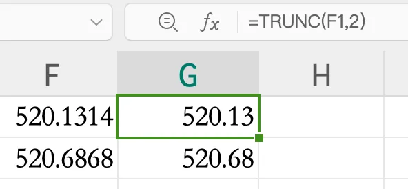 1、round(数字, 位数)常规操作:四舍五入保留一定位数的小数。例如:520.1314取2保留两位小数;520.6868保留2位小数,分别如下:2、INT(数字),取整数。只取整数,对小数不进行四舍五入等操作。例如:520.1314取整、520.6868取整:如下:变化用法:先把数字乘以10,然后再取整,然后再除以10.这样相当于不进行四舍五入保留一位小数。保留多位小数类似进行。例如:520.1314保留一位小数、520.6868保留一位小数。3、TRUNC(数字, 位数),截尾,保留多位小数,不进行四舍五入。我们还举例:520.1314保留两位小数、520.6868保留2位小数。如下:4、ROUNDUP(数字, 位数),无条件进位,保留几位小数,进行进位。例如:520.1314向上进位保留2位小数,520.6868向上进位保留2位小数。但是需要注意的是,当数值为负值时的进位情况是向绝对值大的方向进位,例如:-520.1314向进位保留2位小数,-520.6868向进位保留2位小数。5、数字修约(Rounding):这个比较复杂,只有专业技术人员才能用到。(1)、 核心修约规则(四舍六入五成双)