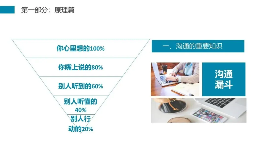 沟通的本质,是信息的传递、理解与反馈的闭环,而现实中的沟通却往往存在着 “漏斗效应”:心里想的 100% 信息,嘴上能说出 80%,别人实际听到的只剩 60%,真正听懂的仅有 40%,最终转化为行动的可能只有 20%。这中间的每一次折损,都源于沟通中的认知偏差、表达疏漏、倾听缺位。