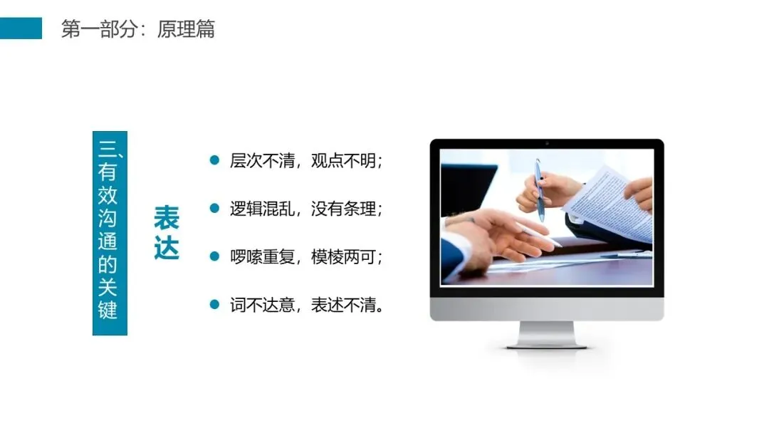 糟糕的表达往往层次不清、逻辑混乱、词不达意,让信息传递大打折扣。优秀的管理者,总能用简洁、清晰、有逻辑的语言传递信息,核心要做到三点: