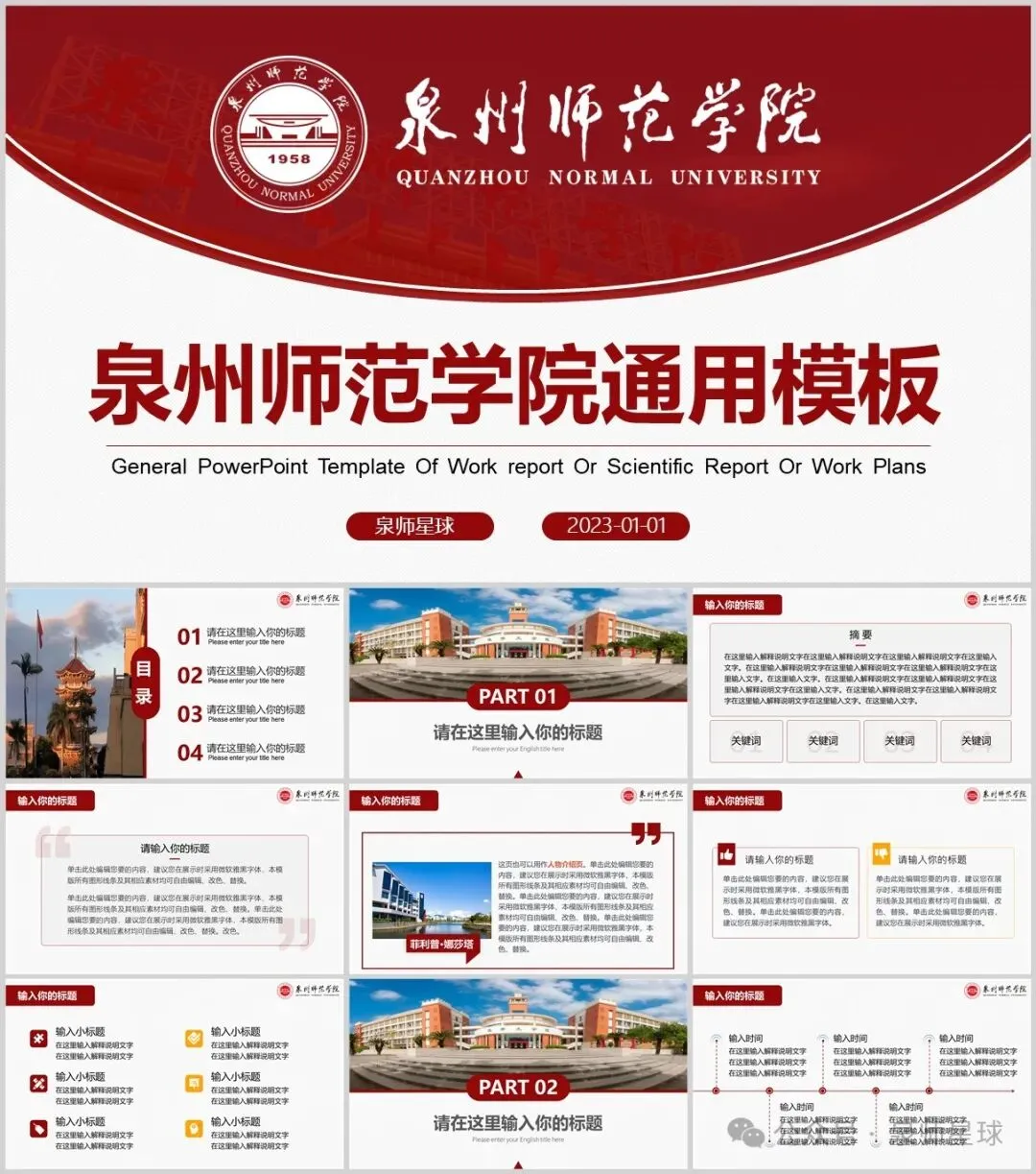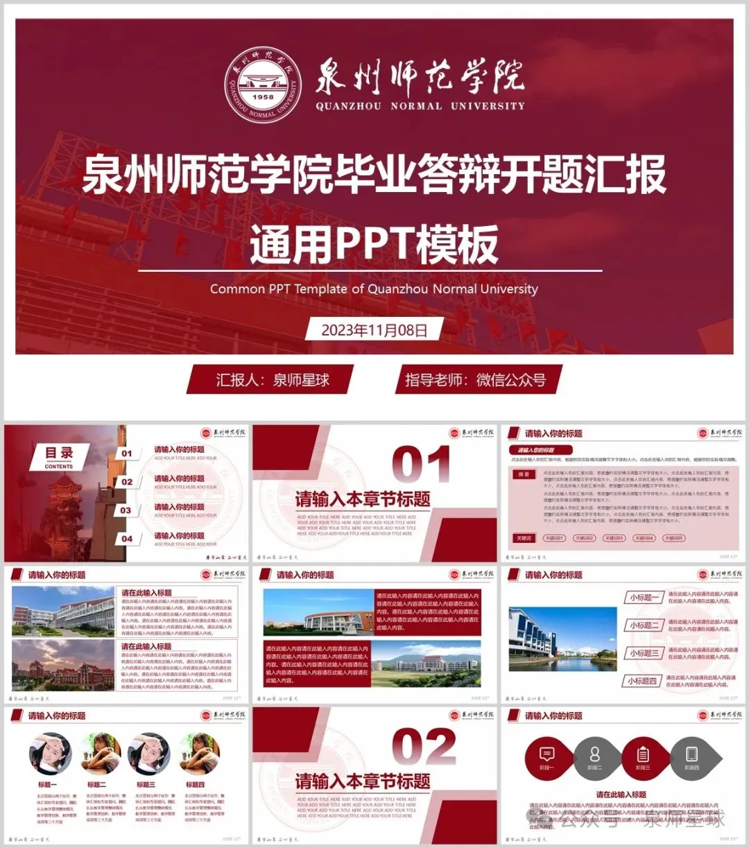 “泉州师范学院”PPT模板来了~