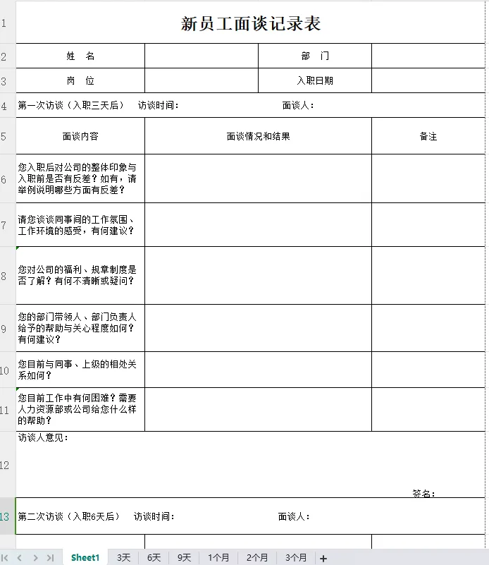 15份面试必备表格
