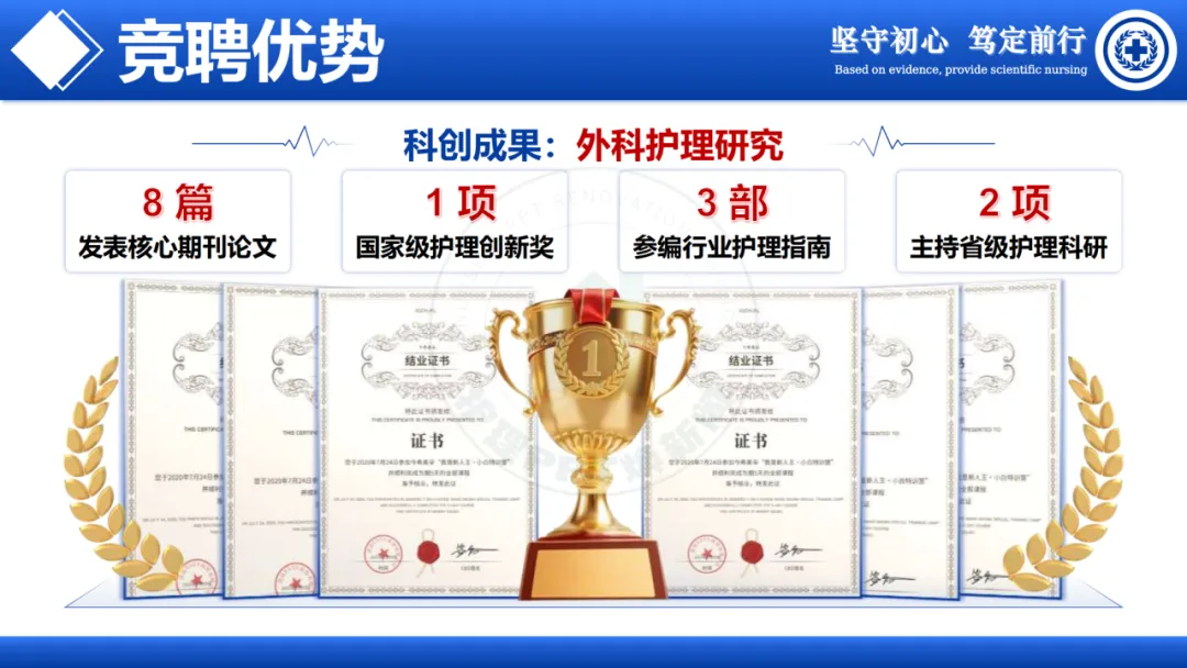 发表核心期刊论文8篇,主持省级科研2项,参编指南3部,获国家级护理创新奖1项。