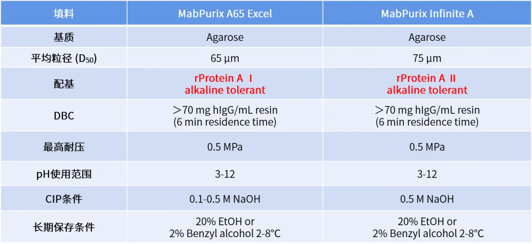 赛分科技MabPurix A65 Excel与MabPurix Infinite A两款填料均以高交联度琼脂糖微球为基质,具有天然的高度亲水性,其表面经过独特的化学修饰后与耐碱性重组Protein A配基键合,高载量、高耐碱性、寿命长的优势在实际生产应用中可有效降低生产成本。MabPurix A65 Excel性能稳定,载量表现与蛋白A配基、HCP等杂质控制能力突出,已成功应用于多个临床及商业化生产的抗体类项目。MabPurix Infinite A填料键合新一代高耐碱性Protein A配基,在线清洗(CIP)可耐受0.5~1.0 M NaOH,CIP条件为0.5 M NaOH的寿命实验验证可使用150 cycles以上,尤其适用于碱性条件要求高的复杂抗体类项目。