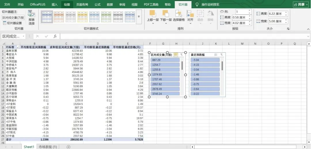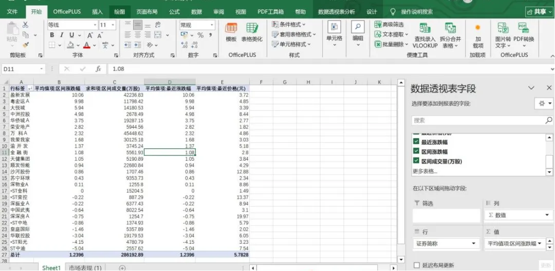 以“巨潮数据网”中公开市场数据为例,创建“个股表现排名”透视表
